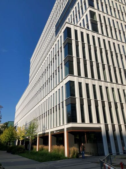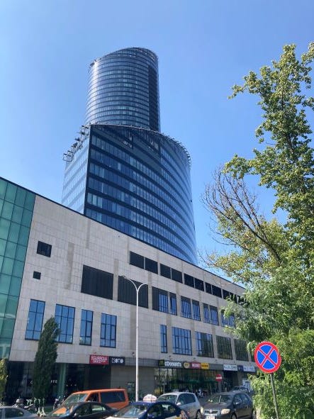 The school is located right across the street from the Sky Tower, the most recognizable modern building—also the tallest, I think—in Wrocław: