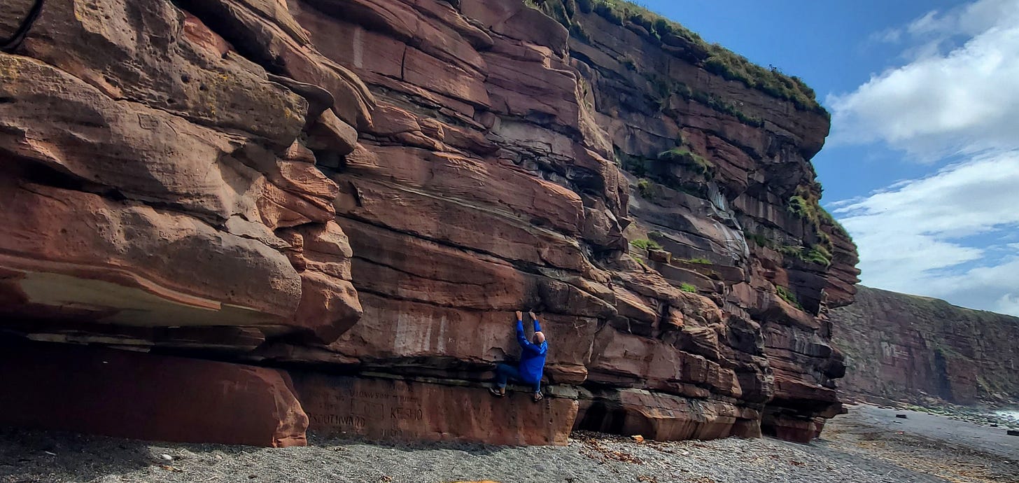 While my wife and sister wandered around the beach taking photos, I found time to do a bit of impromptu half-hearted bouldering: