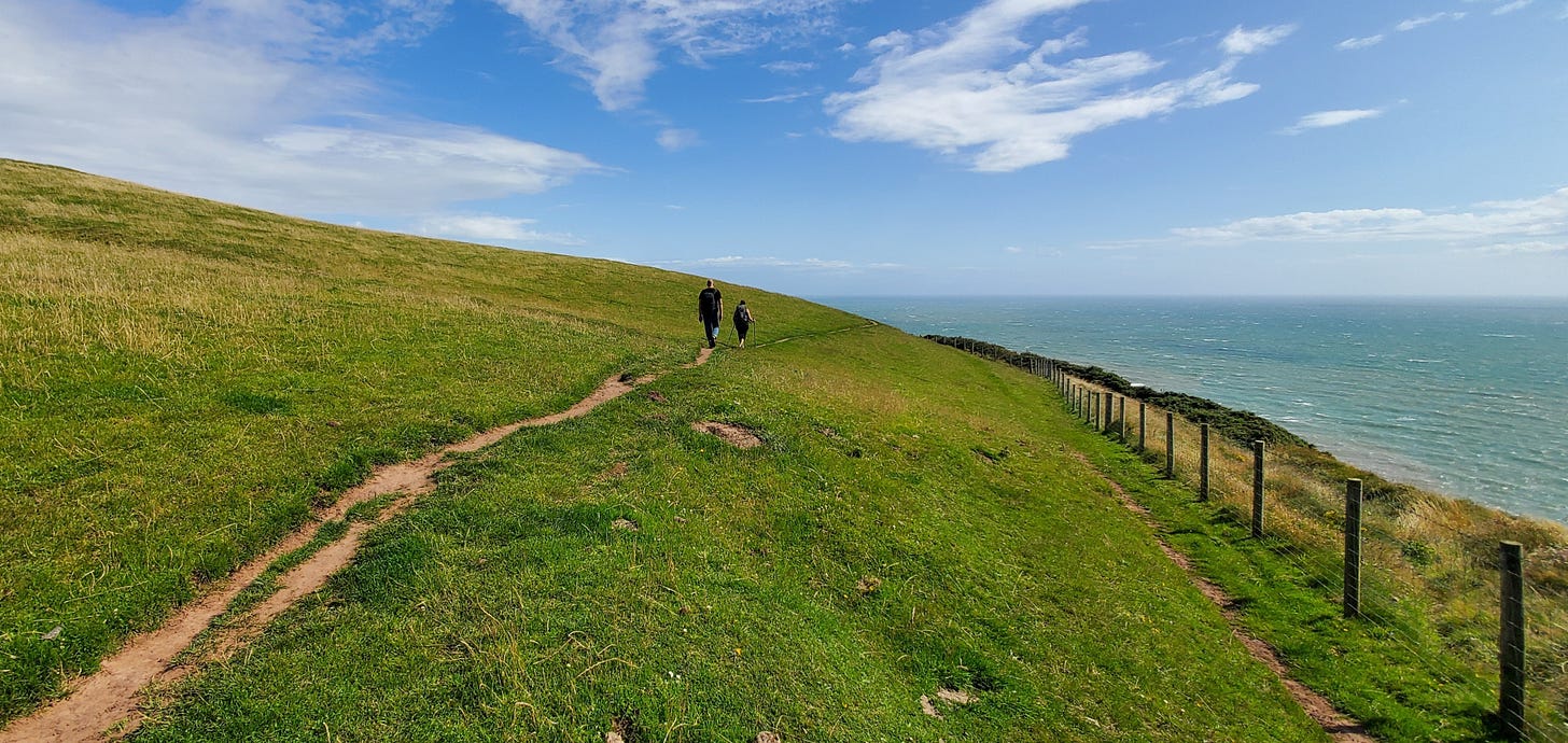 There's quite a bit of up-and-downing along these coastal cliff paths--more than you might assume from looking at the coast from a distance in photos. I'd say "hilly" to "very hilly" would describe it.
